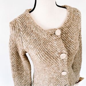 Moth Anthropologie Wool Button Front Long Sleeve Sweater Jacket Lace Trim Sz M