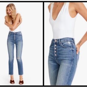Mother 24 the pixie Dazzler ankle fray popism high rise button fly denim designer jeans