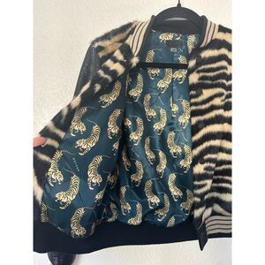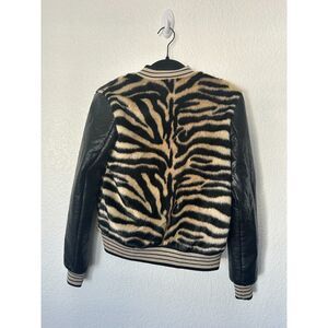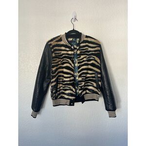 Mother Baseball Faux Fur Snap Jacket Tiger Print Varsity Faux Leather Size XS