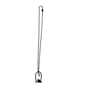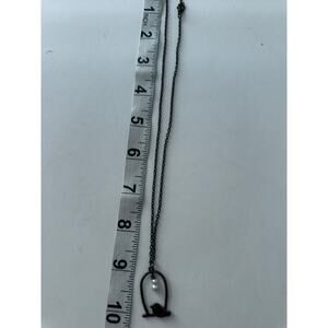 The necklace features a mother bird with two faux pearl babies nestled in her nest. It hangs approximately 10 inches long and is made of dark metal.