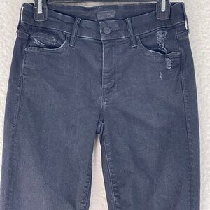Mother Black Denim Looker Ankle Fray Skinny Jeans Womens Destroyed Size 26