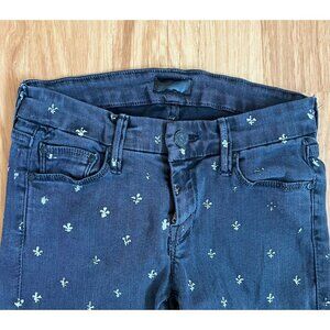 Mother Blue The Looker Ankle Fleur de Love Patterned Jeans W/ Ankle Zip, Size 24