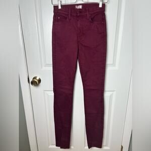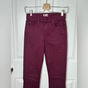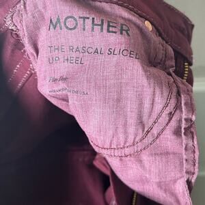 Mother Cotton The Rascal Sliced Up Heel Jeans in Burgundy 25