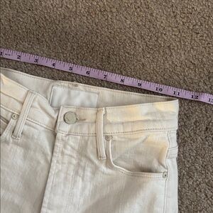 Good condition with minor wear. See photos for details and measurements. Minor stain pointed out. Chic cream jeans with subtle stitching. Ideal for everyday style.