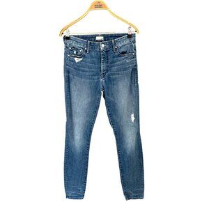 Mother Denim High Waisted Looker Jeans Blue Distressed Size 29