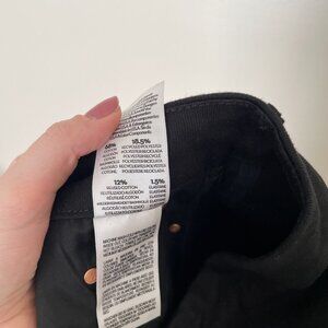 Features: zip fly with button closure, front and back pockets, fitted leg, high rise, clean hem, skinny jean, cotton blend