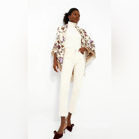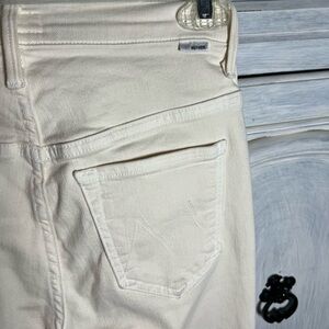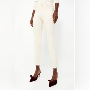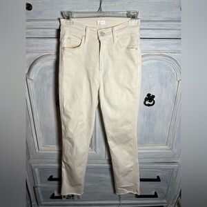Mother Denim High Waisted Rascal Ankle Fray Eggnog Jeans Stretch Classic