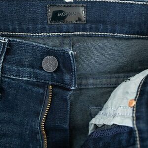 The goods. This iconic high-waisted bootcut hits at the ankle with a frayed step-hem. Made from versatile stretch denim, Good For You is a dark blue wash with black hardware, whiskering and subtle fading at the knees. MOTHER knows best.
