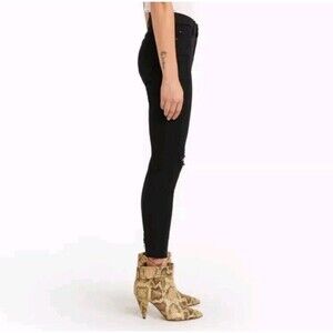 Elevate your style with these chic Mother Denim Looker Ankle Fray jeans in the Guilty As Sin black wash. These jeans feature a skinny and slim silhouette with rips at the knee, stretch material, and a 5-pocket design. The black fabric wash and distressed treatment add an edgy touch to your winter, summer, fall, or spring outfit.