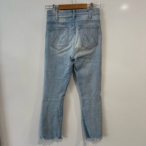 A perennial MOTHER denim favorite! These faded blue MOTHER Hustler Jeans have a frayed, flared leg that's cropped to show off your favorite sneakers.