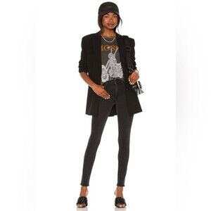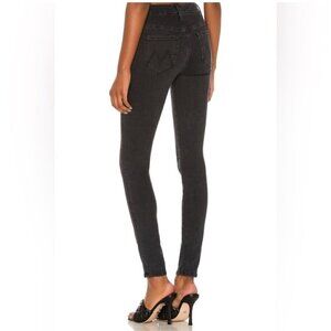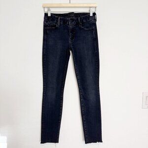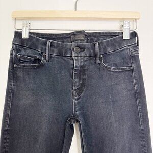 Mother Denim The Looker Ankle Fray Skinny Leg Jeans Blackbird Washed Black 25