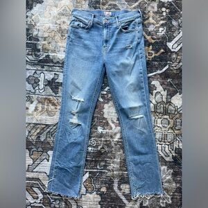 Mother Denim The Mid Rise Dazzler Ankle Fray Weekend Kitten Jeans Distressed