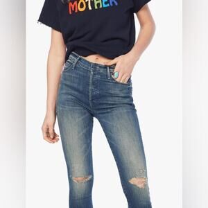 Mother Denim The Stunner Ankle Fray Distressed Skinny Jeans Field of Dreams 28