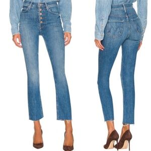 These high-rise jeans by Mother feature a relaxed fit, cuffed hems, and distressed details for a cool and effortless lived-in feel. Vintage-inspired jeans.