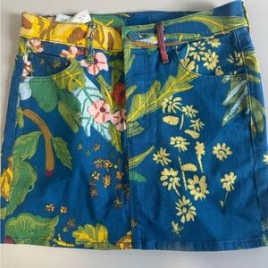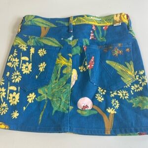 Mother - Floral Denim Mini Skirt stretch denim 14 1/2”
