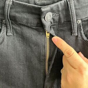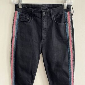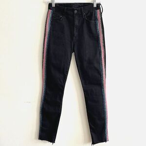 Mother HW Looker Ankle Jeans Guilty Glitter Racer Sz 26 Black Raw Hem Stretch