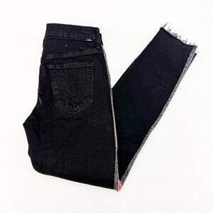 Mother High Waisted Looker Ankle Fray Guilty Glitter Race Black Denim Jeans SZ27