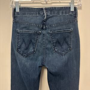 Mother High Waisted Looker Ankle Fray Jeans Moonlust Privateer Dark Wash Casual