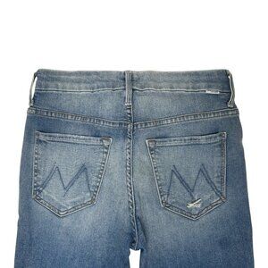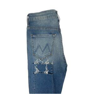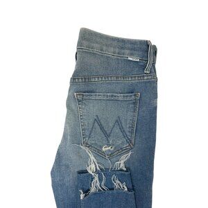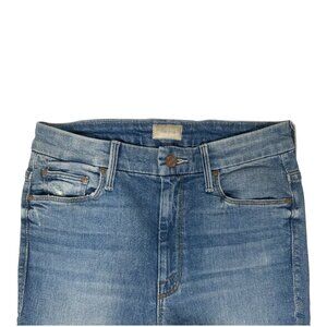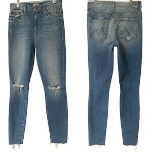 Mother High Waisted Looker Ankle Fray Jeans Size 26 In Thrilling Shots Wash, Blue Denim, Distressed, Stretch, Fading, Whiskering