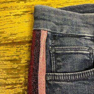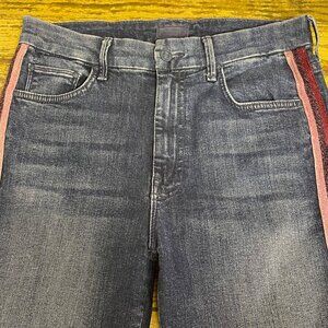 Mother High Waisted Looker Here Kitty Kitty Racer Jeans Blue Red Sz 28 1221-104