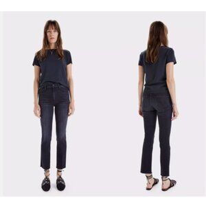 Mother High Waisted Rascal Ankle Snippet Jeans Thunder Road Black Size 28