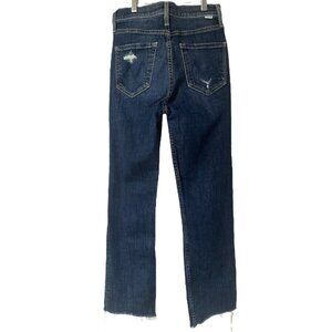 Mother High Waisted Rider Ankle Fray Jeans Size 26 In Wicked Wildflower Wash, Blue Denim, Distressed, Stretch, Fading, Whiskering, Raw Frayed Hem