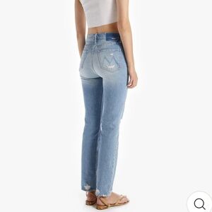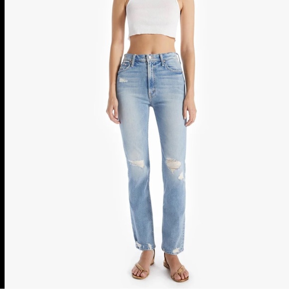 The MOTHER High-Waisted Rider Skimp Jeans in The Confession wash are a timeless denim essential with a flattering, vintage-inspired feel. Designed with a high-rise waist and a straight-leg silhouette, these jeans are crafted from premium denim with a structured yet comfortable fit that holds its shape. The classic blue Confession wash features subtle fading for a perfectly broken-in look, making them easy to dress up or down. Effortlessly versatile and endlessly wearable, these jeans pair seamlessly with everything from casual tees to tailored tops.
