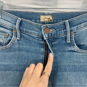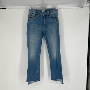 Mother Insider Step Crop Fray Light Wash Denim Jeans in Shoot To Thrill 26