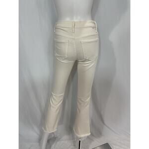 Mother 'Insider' White High Waist Crop Step Hem Jeans Size 25: button closure, zip fly, five pocket style, belt loops, bootcut silhouette, cropped length, raw hem.