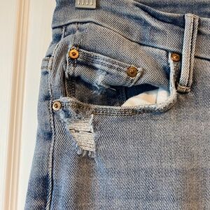 EUC Mother jeans in ‘Chatterbox’ light wash. Intentional cute distressing as pictured. Slim fit. Size 27. Waist: 14.5 inches. Rise: 10 inches. Inseam: 27 inches. Mother jeans are always the wise choice; great trendy fit!