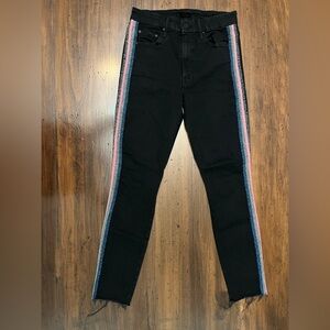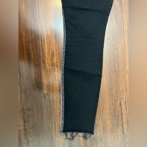Mother Jeans Size 26 High Waisted Looker Ankle Fray Glitter Racer Skinny Black