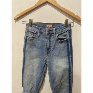 Mother Jeans Womens 24 Blue Light Wash Stunner Zip Ankle Step Fray Hem Stretch