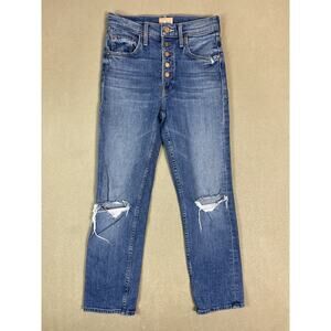 Mother Jeans Womens 24 Blue The Pixie Tomcat Crop Distressed Mid Rise Denim