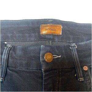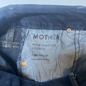The product is a pair of Mother Jeans for women in a size 26, featuring a high-waisted rise and a skinny fit. Made from a cotton blend denim fabric with a dark wash, these blue jeans have a zip closure and a 29-inch inseam. The brand is Mother and the style is The Looker, with a theme that includes USA, Bohemian, and City elements. Perfect for all seasons, these jeans offer a comfortable and versatile option for everyday wear.