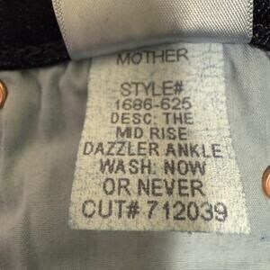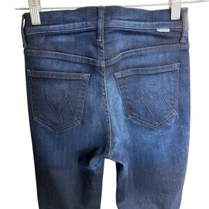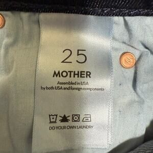 The Mother Jeans Women's mid high rise Dazzler ankle in size 25 features a preppy prep style with a mid rise and ankle length. Made of denim with a dark wash, these slim fit jeans have a zip and button closure, a 5-pocket design, and are machine washable. The jeans are accented with a logo and are designed for a comfortable stretch fit, making them perfect for the summer, fall, and spring seasons. Made in the United States, these jeans are a stylish and versatile addition to any woman's wardrobe.