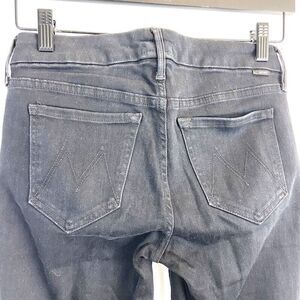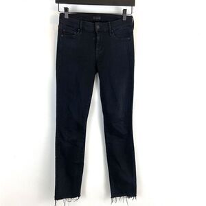 Mother Looker Anke fray raw hem factory distressed black bird skinny jean 24