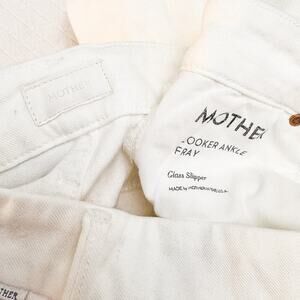 Mother Looker Ankle Fray Glass Slipper White Denim Jeans Size 25