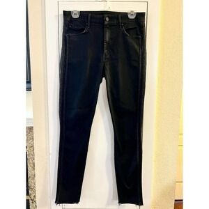 Mother Looker Ankle Fray Guilty Party Racer Skinny Jean Pant Black Raw Hem Sz 28