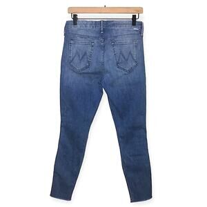 Mother Looker Ankle Fray Jeans in Light Wash Side Stripe Blue Pink Size 29