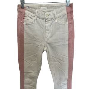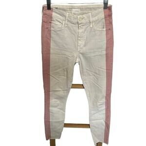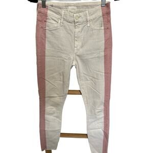 Mother Looker Ankle Fray So Far Gone Jeans Mid Rise White Pink Stripe Size 24