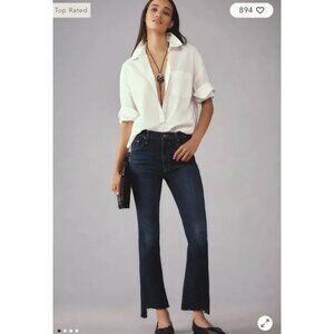 Mother Mid Rise Dazzler Jeans Denim Ankle Fray Off Limits Dark Wash 29