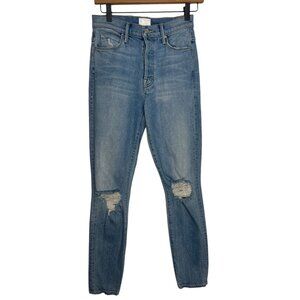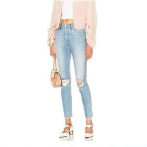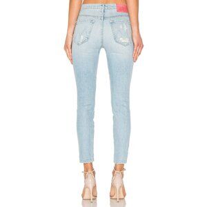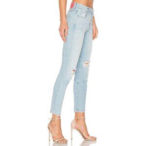 Mother X Miranda Easy Does It Thanks For Everything Light Wash Distressed Skinny 25
