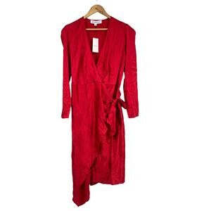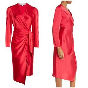 Mother Of All NWT Rosie Long Sleeve Stretch Silk Satin Wrap Dress Red Size M