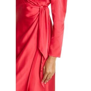 Mother Of All NWT Rosie Long Sleeve Stretch Silk Satin Wrap Dress Red