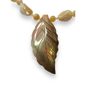 Mother Of Pearl Abalone Leaf Necklace With Sterling Silver Lobster Clasp 18.5"