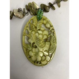 Mother Of Pearl Green Asian Bird Themed Adjustable Choker
