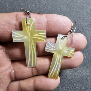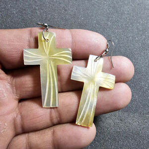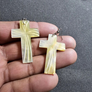 Mother Of Pearl White Hand Made Carved Cross Earings shows signs of wear see pictures for reference