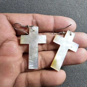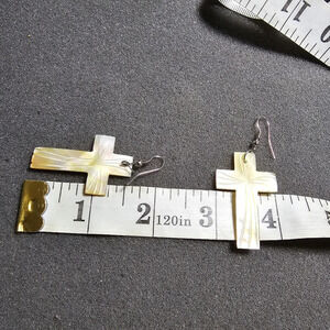 Mother Of Pearl White Hand Made Carved Cross Earings shows signs of wear see pi