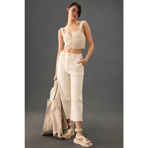 Mother Patch Pocket Private Ankle Fray Jeans Cream High Rise Button Fly Sz 28