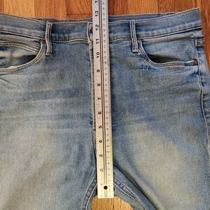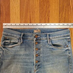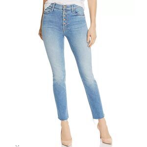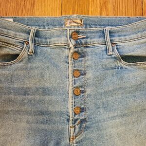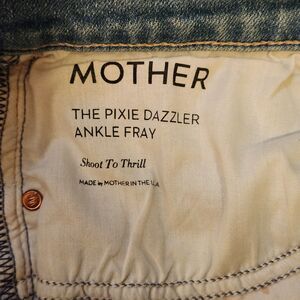Mother Pixie Dazzler High Rise Straight Leg Ankle Jeans, "Shoot to Thrill" Sz 31. Exposed button fly and ankle fray. Good condition, very soft and broken in, no holes or stains or pilling. Look carefully at the photos and make sure you are OK with the broken in condition. Medium/Light wash.